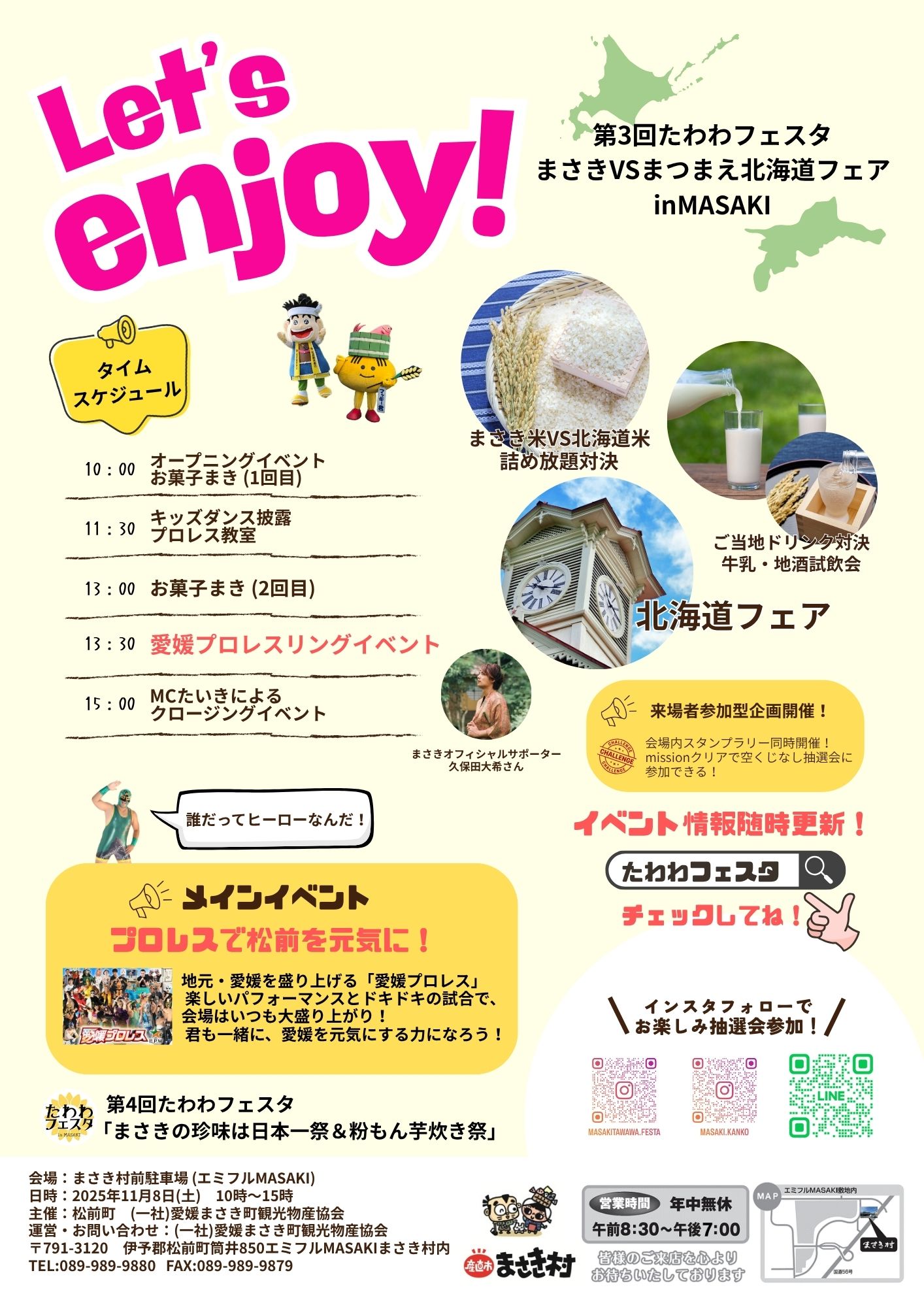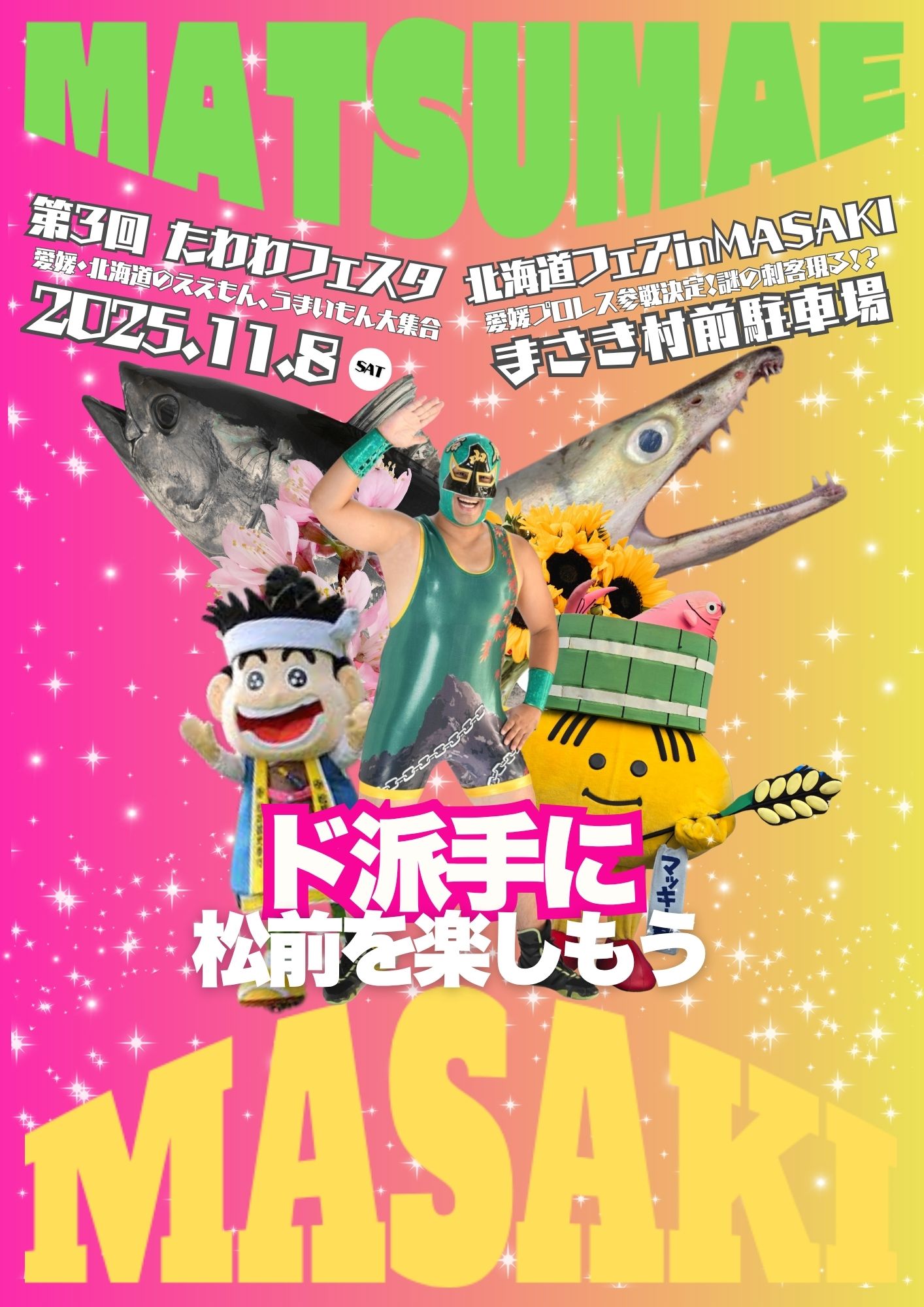 | 内 容 | 世起さまご協賛のもと、愛媛プロレスがリングを持ってやってくる‼ 2つの松前(愛媛・北海道)をテーマに、 リングでも愛媛VS北海道が⁉ |