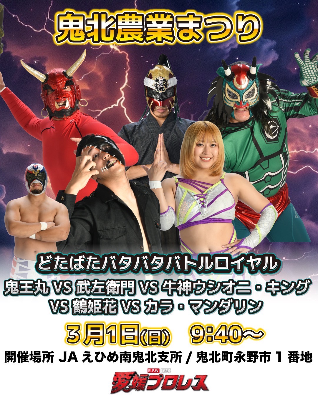 | 日 時 | 2026年3月1日(日) 9:00〜12:00 (愛媛プロレス路上パフォーマンスは9:40〜) |
