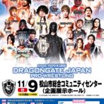ドラゴンゲート 2025年11月9日 4:00 PM – 6:30 PM 会場: 松山市総合コミュニティセンター カテゴリ: recommend, 参戦, 愛媛 タグ: 2025.11.9 (日) 2025月11月9日(日) ■時間/16:00 GONG ■場所/愛媛・松山市総合コミュニティセンター 企画展示ホール